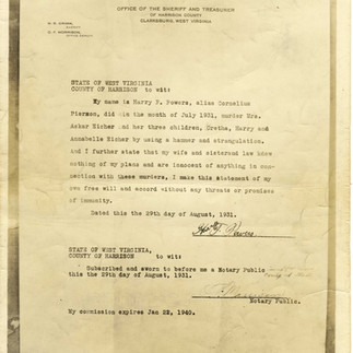 IN OVER 50,000 WORDS HARRY WROTE A FULL CONFESSION OF HIS CRIMES. HE REQUESTED THAT IT BE SOLD TO THE HIGHEST BIDDER TO PAY FOR THE TRIAL AND ALL COSTS OF THE INVESTIGATION.