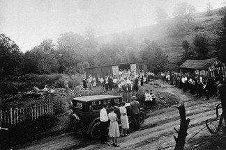AS WORD STARTED TO SPREAD THROUGH THE TOWN OF QUIET DELL, PEOPLE CAME FROM ALL OVER. POLICE HAD TO HOLD THEM BACK AND SOME STARTED TO DIG AROUND THE PROPERTY.